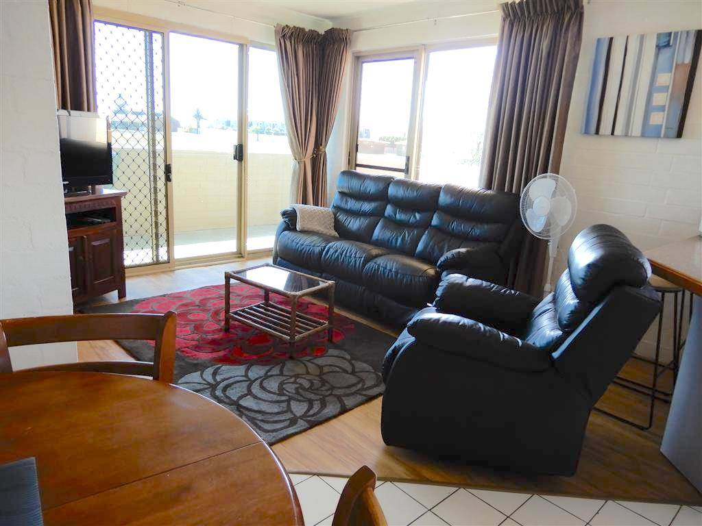 The Main lounge area offers very comfy seating and tv, with a sliding door that leads out to a stunning view and balcony. The unit faces the ocean and with only the oval in between it is uninterrupted!