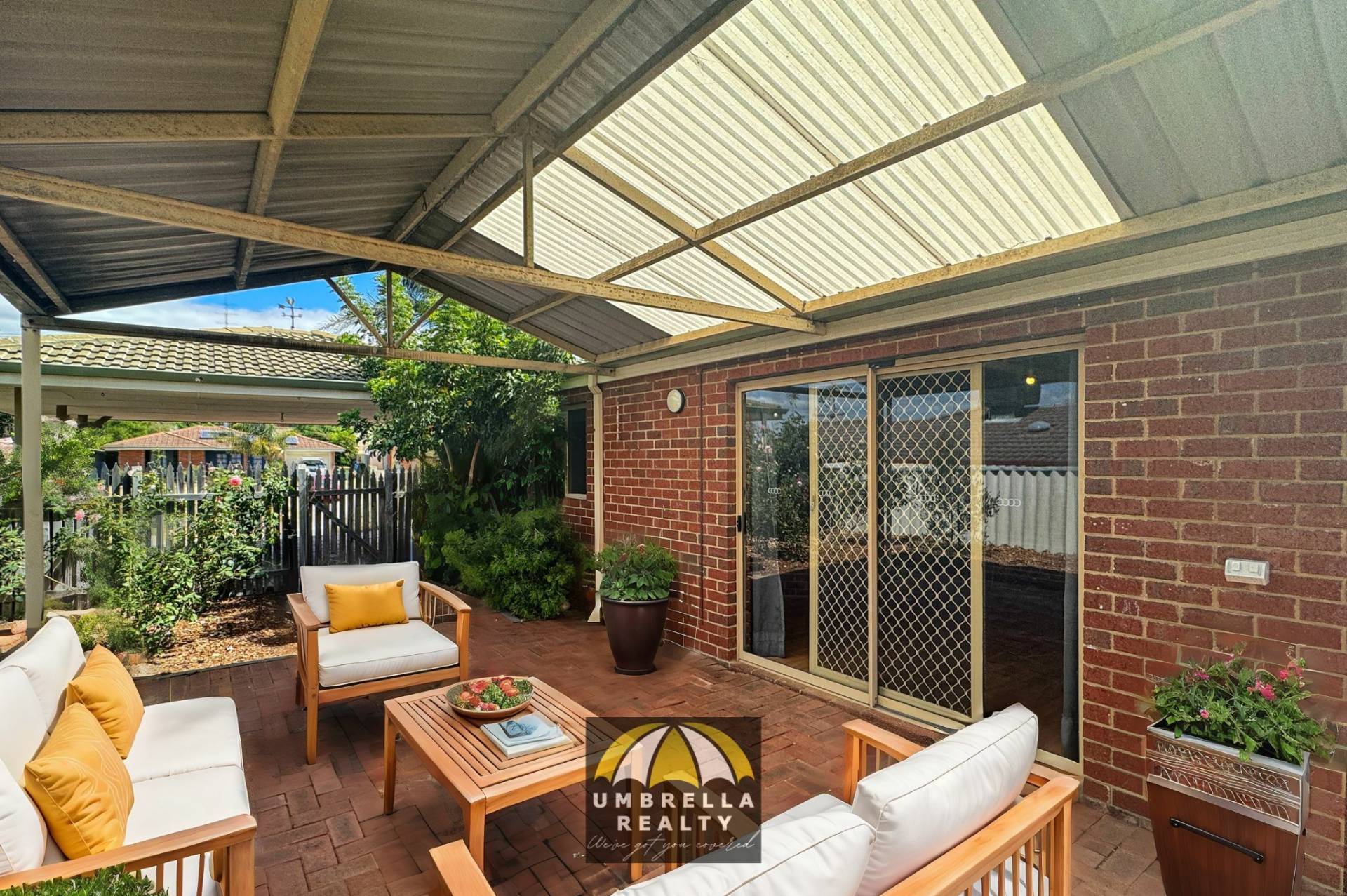 • Large gabled patio with side access;