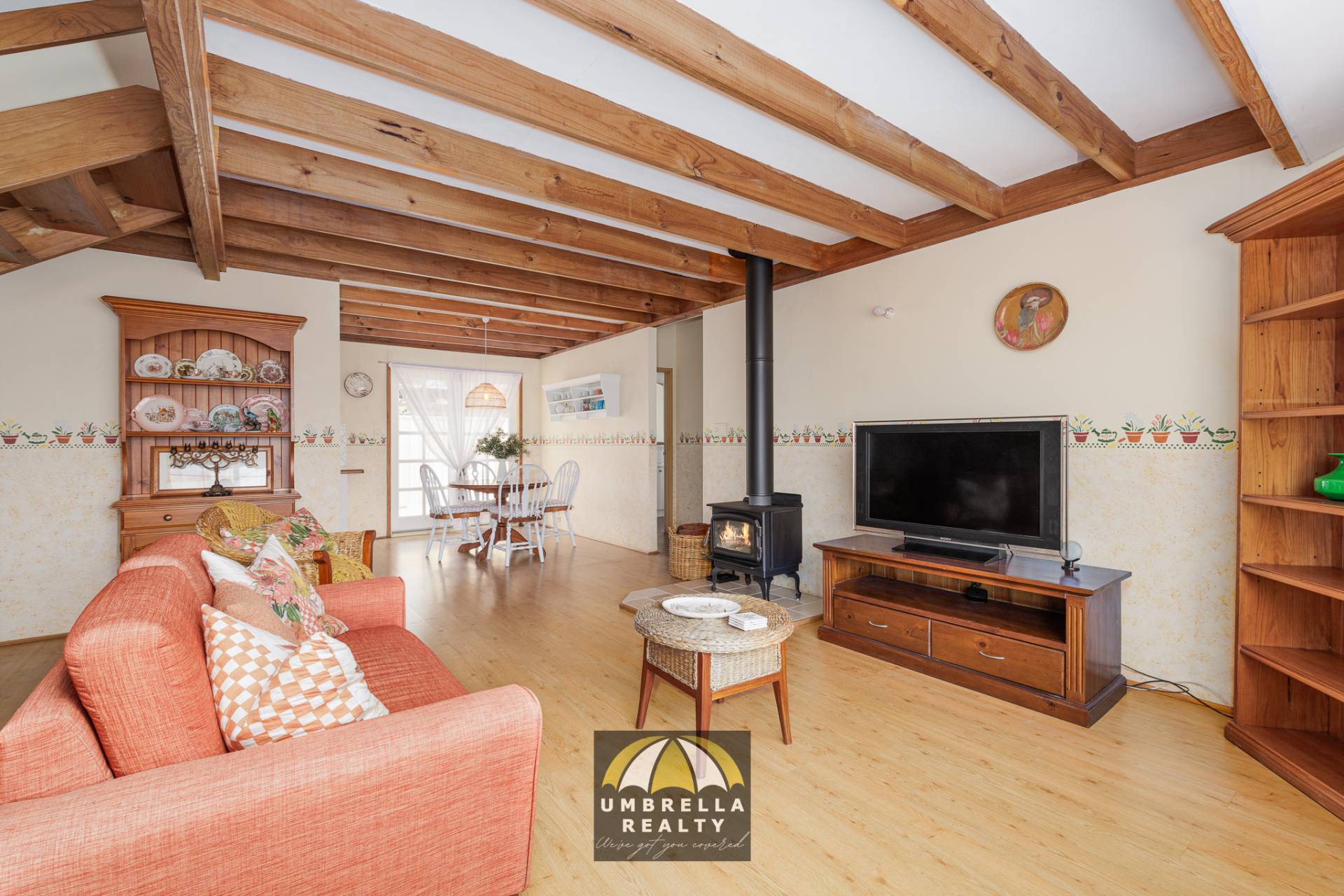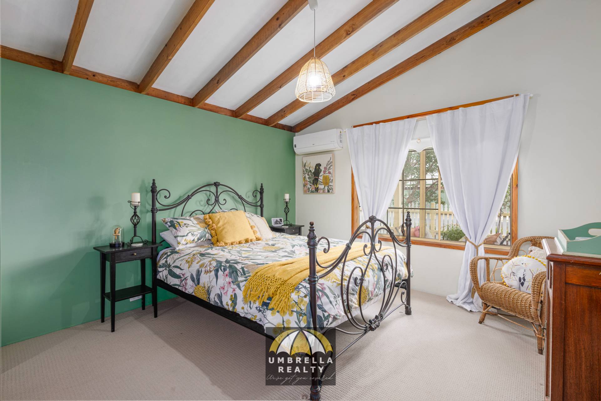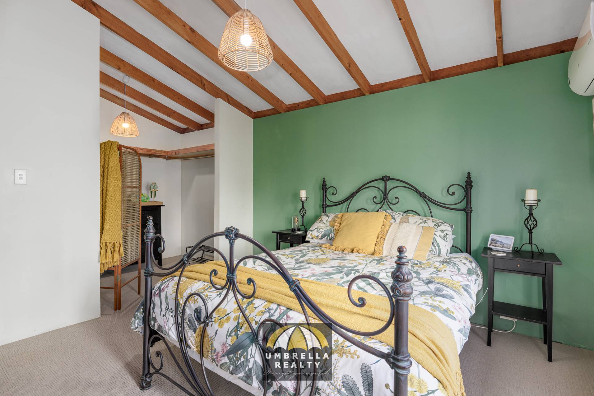The cozy living area centres around a beautiful wood fireplace, which provides warmth to both the lower and upper levels. The versatile upper level of the home is a standout feature, ideal as a third bedroom or an additional living space. With a walk-in robe, a private bathroom, stunning raked ceilings, and a charming balcony accessible through French doors, this space exudes character and charm.