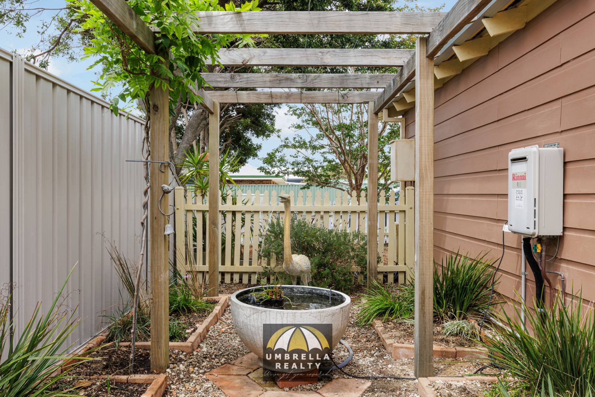 Outside, the low-maintenance gardens are thoughtfully landscaped with native plants, a peaceful fountain area, and ample space for entertaining. The property offers side access, providing potential for a granny flat or powered shed (STCA), in addition to an existing smaller shed for storage.
