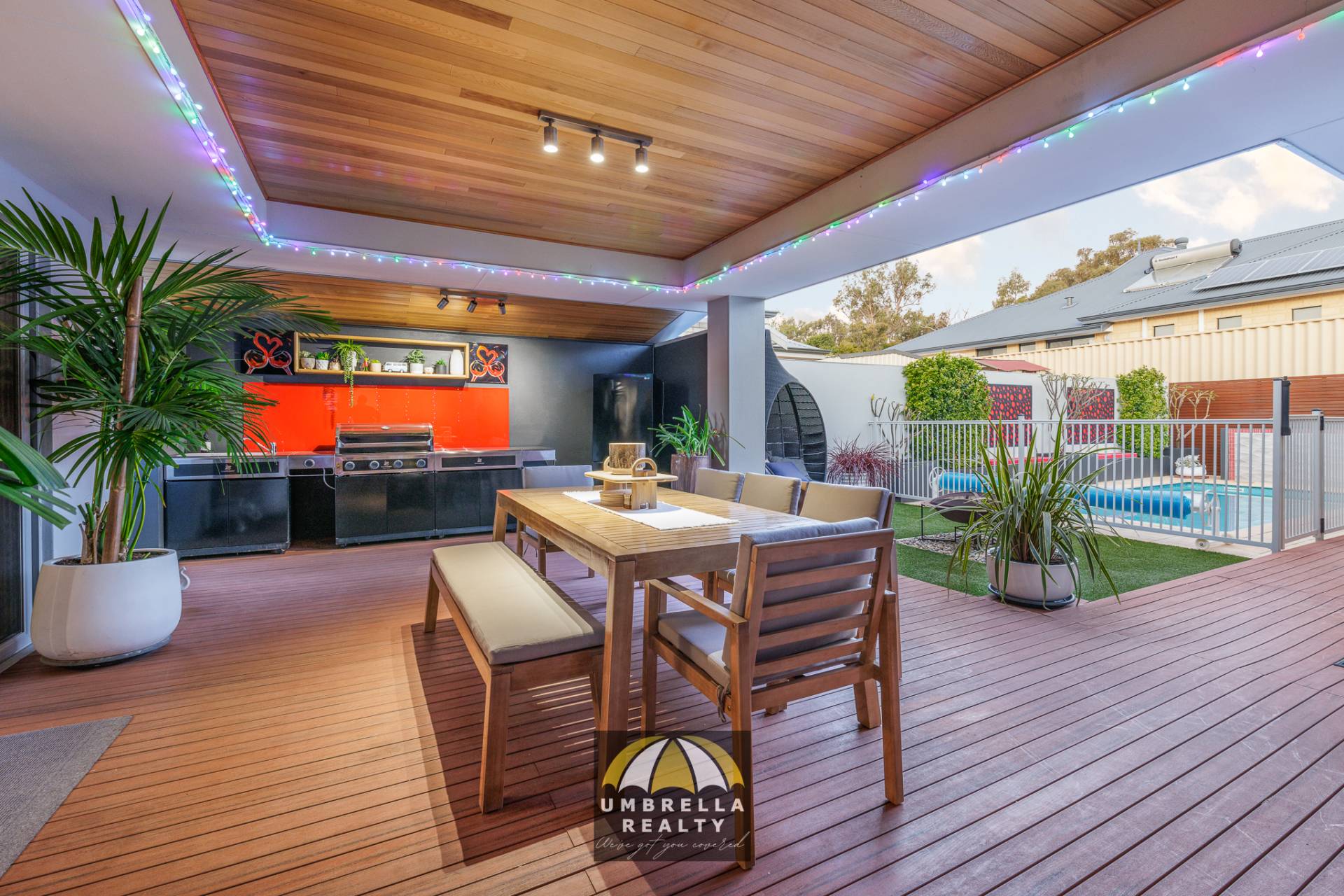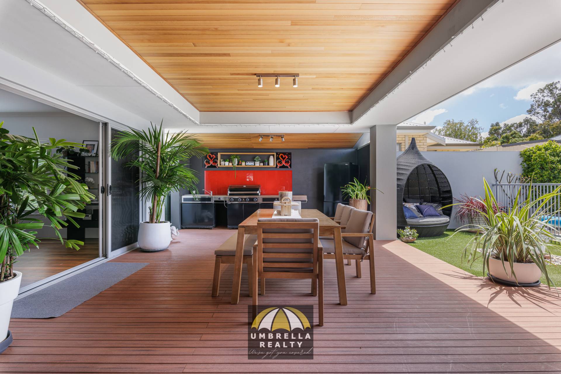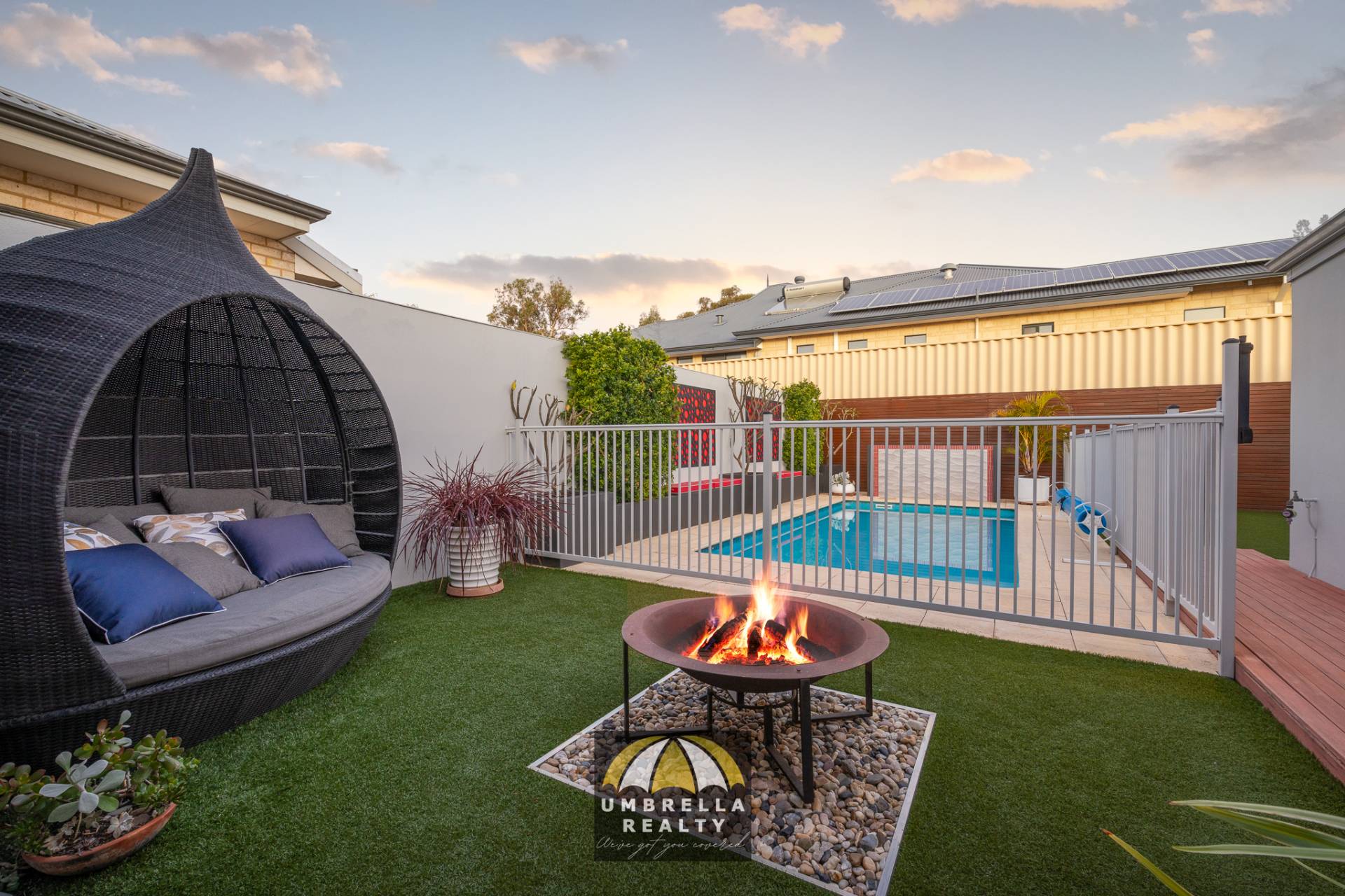 The alfresco area offers a seamless transition between the internal living space with two sets of stacker doors you can open up for entertaining.  The entire family can enjoy the alfresco which includes a built-in BBQ, dining area as well as a lounge and built-in TV.  The alfresco overlooks the fire pit and below ground pool so the kids can play while you relax and entertain.