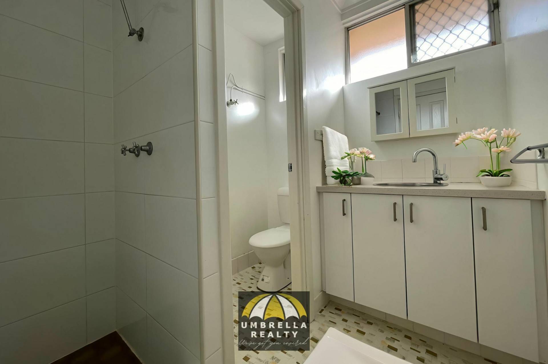 • The bathroom offers a shower, toilet and vanity;