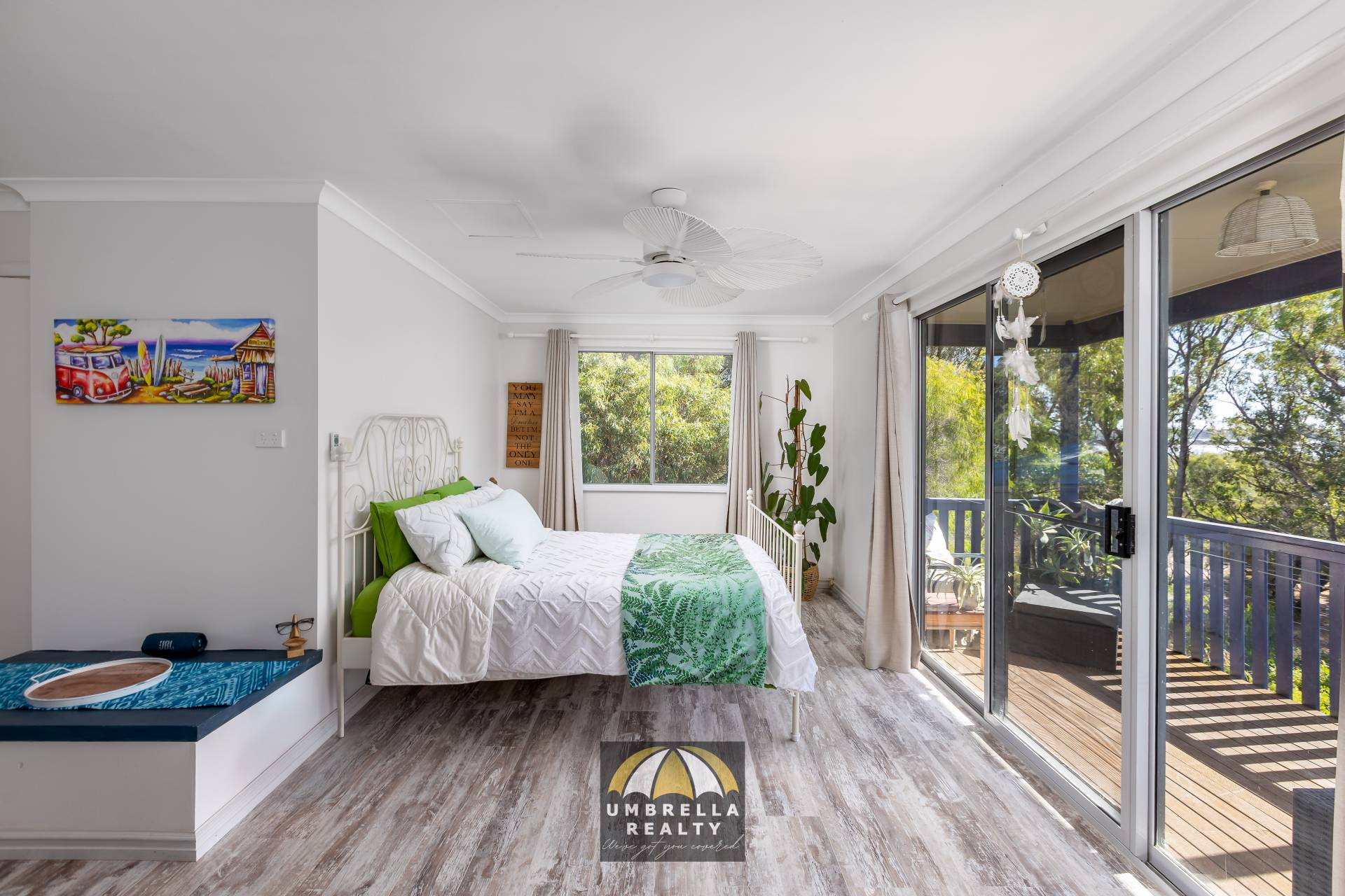 The top floor is dedicated to the private master retreat. Here, the main bedroom opens to a peaceful upstairs lounge area where you can unwind with a book or simply enjoy the quiet surroundings. Step out onto the balcony and take in the rustling trees, abundant birdlife, and tranquil views of Lake Preston. With a reverse cycle air conditioner, ceiling fan and a modern, sleek ensuite, this level provides a tranquil haven at the end of the day.