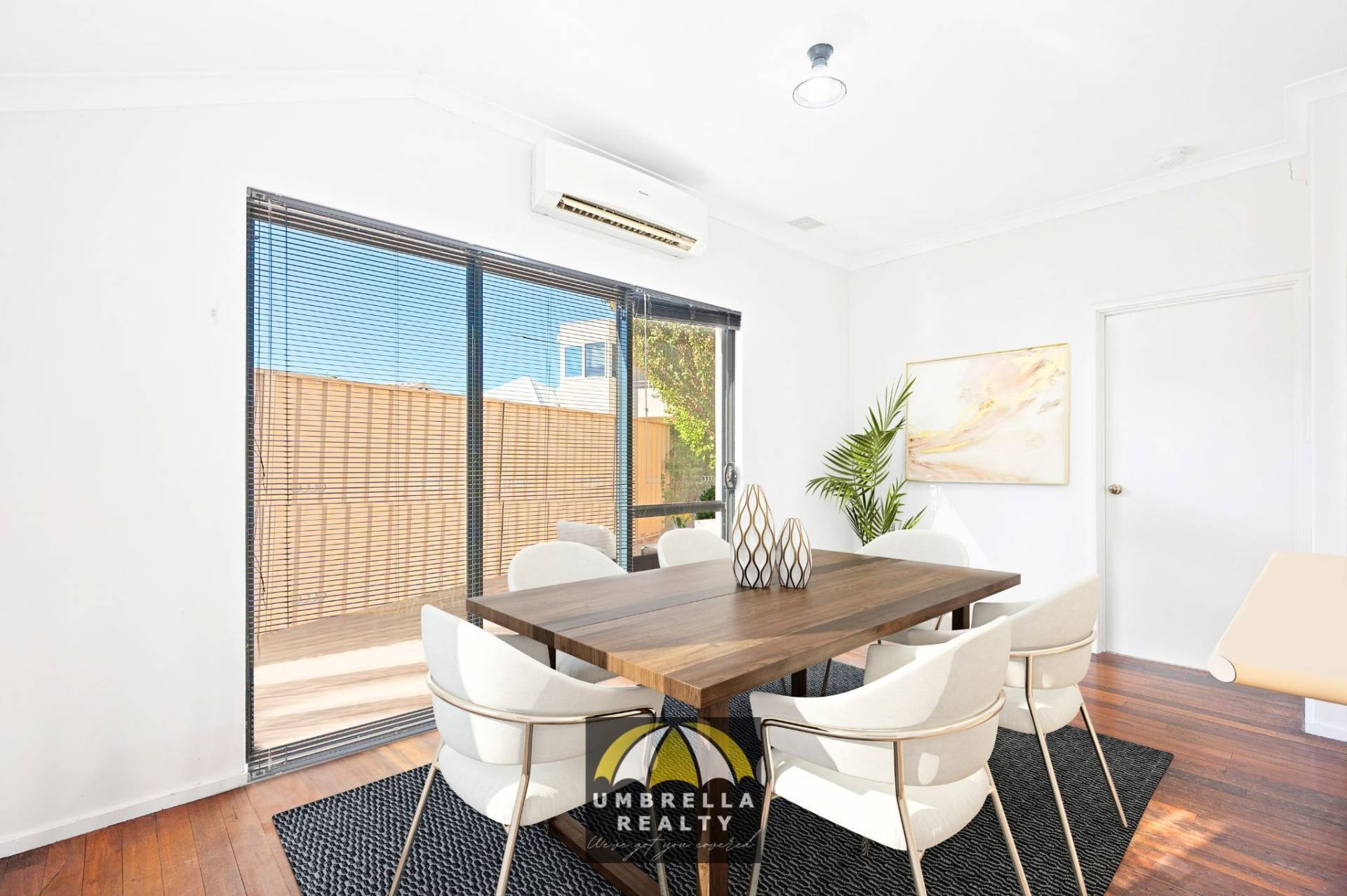 • High ceilings & jarrah flooring