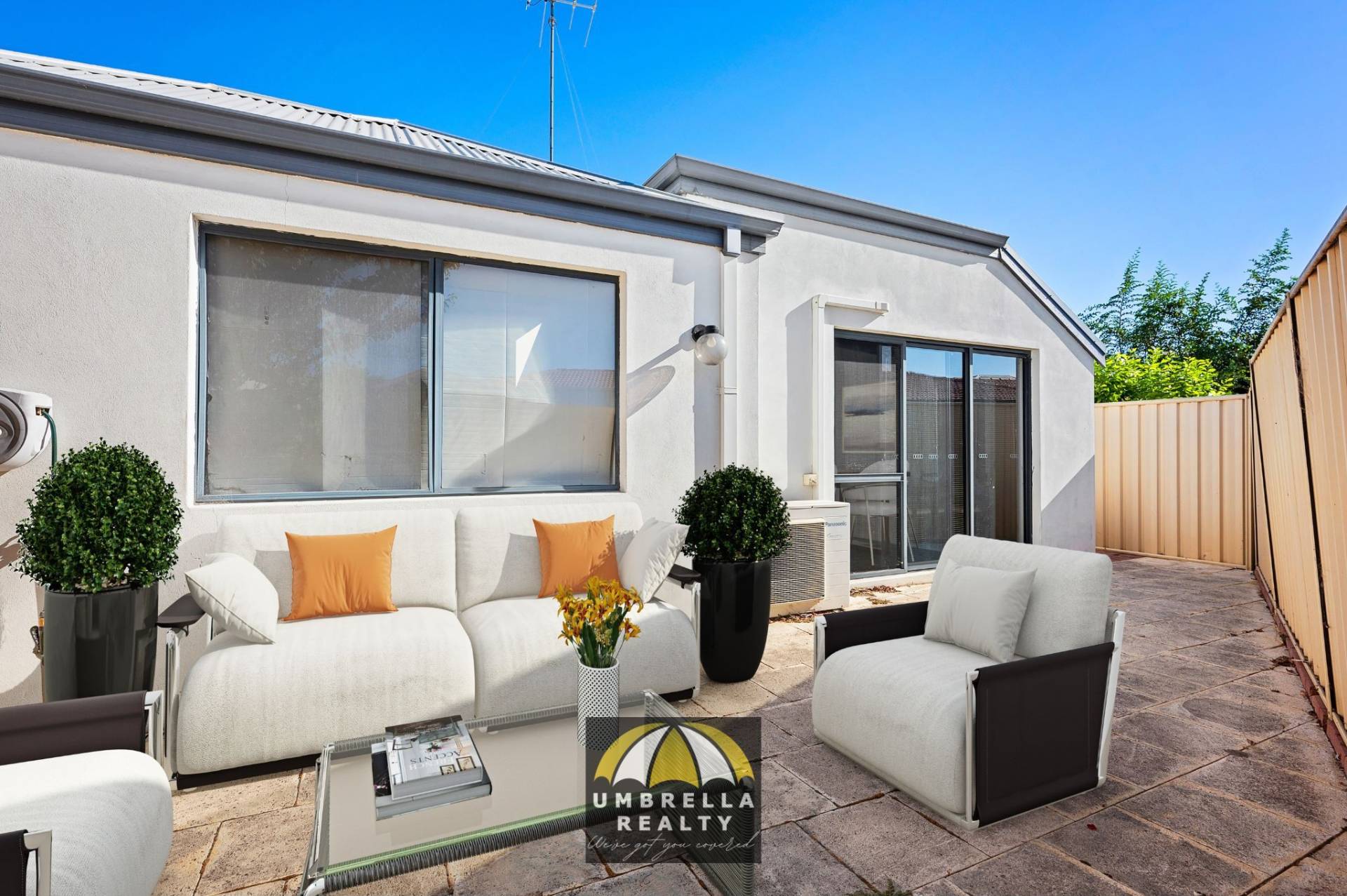 • Low-maintenance courtyard with storage