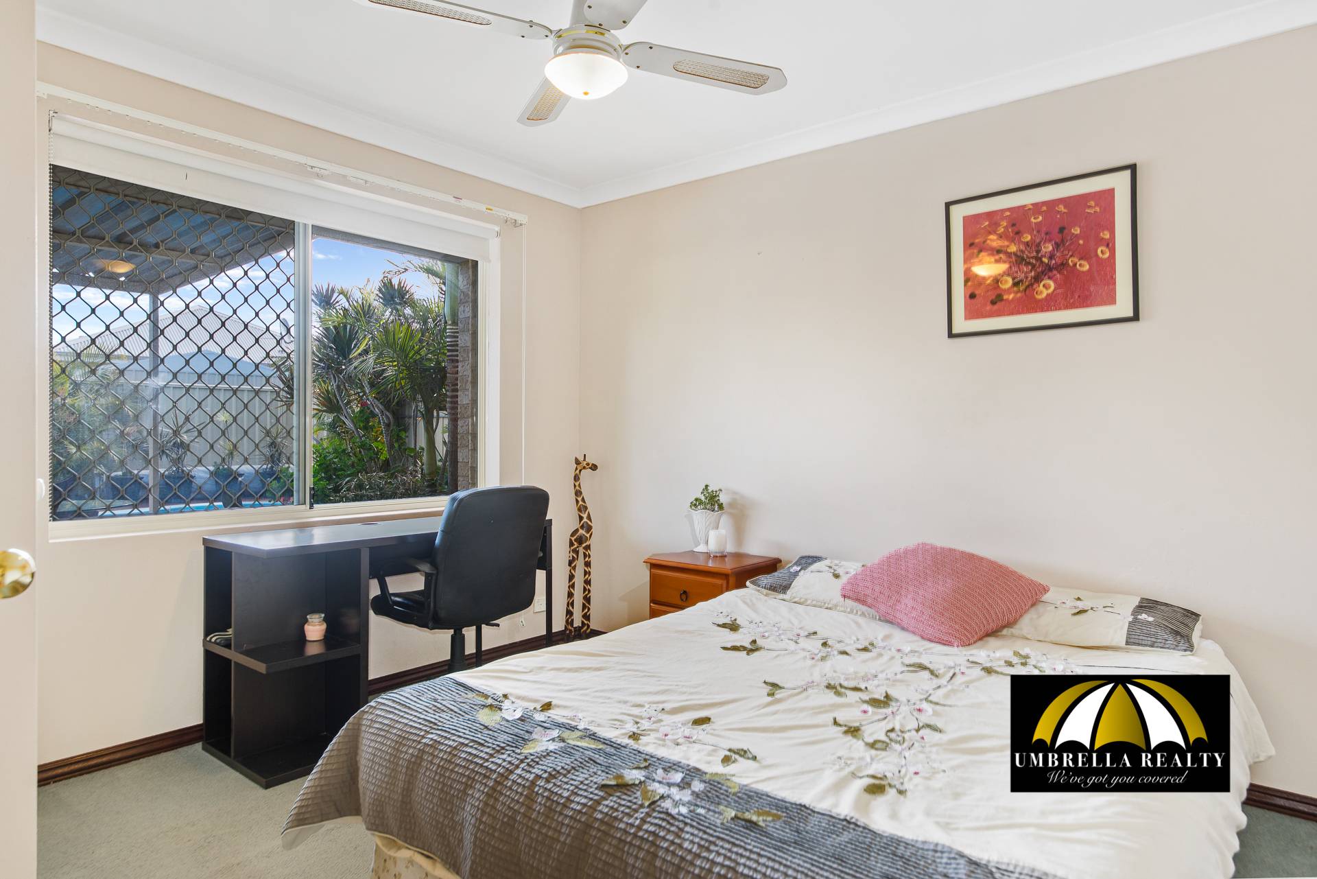 -Master bedroom has a security roller shutter, ceiling fan WIR and en-suite