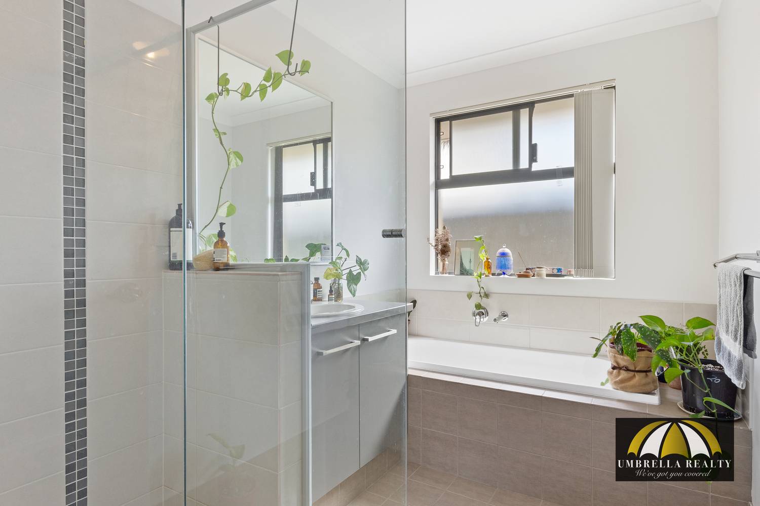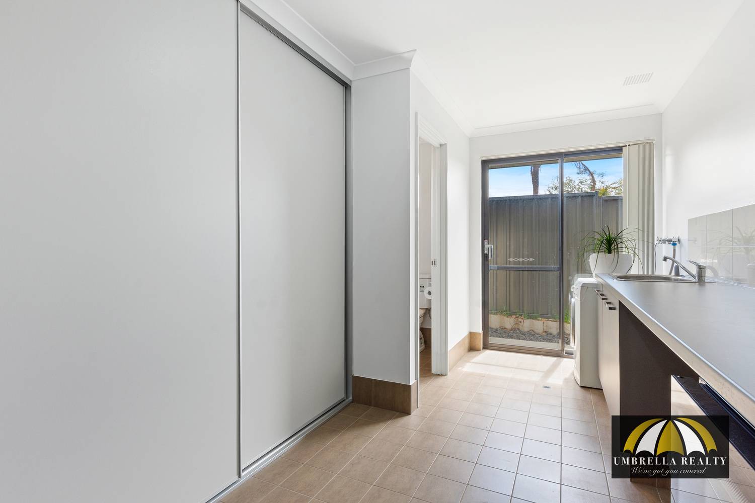 The master bathroom is position between both minor bedrooms offering separate shower and bath. The laundry offers a three sliding door cupboard and additional under bench storage.