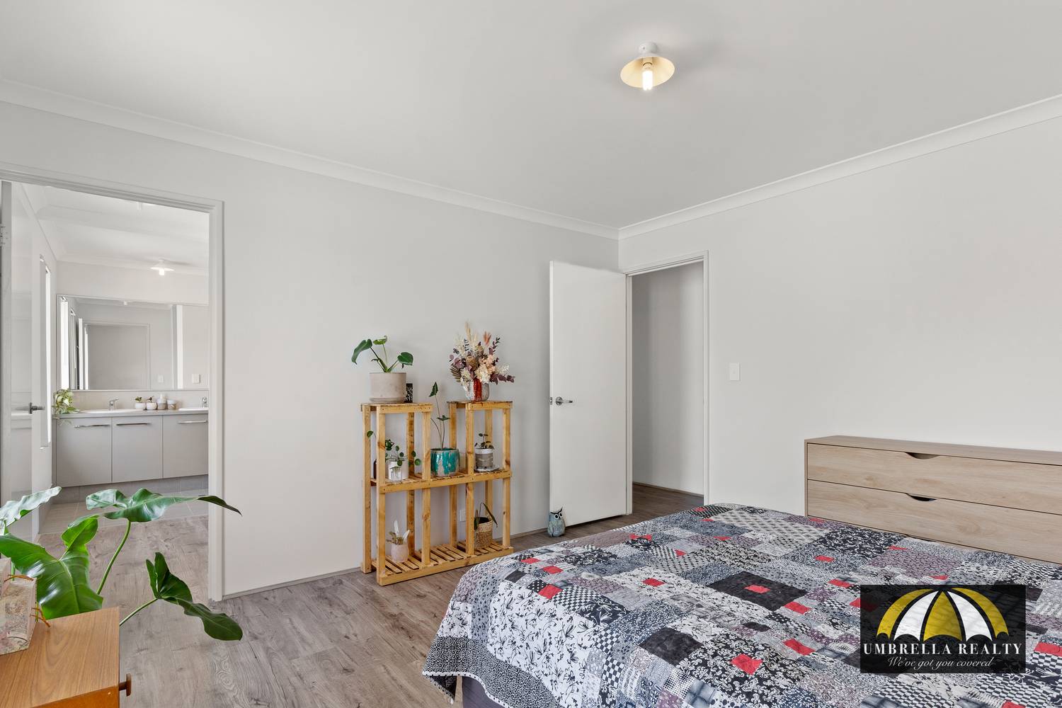 The master bedroom is large in size and offers walk in robe and access to a large ensuite bathroom with double sink and separate toilet.