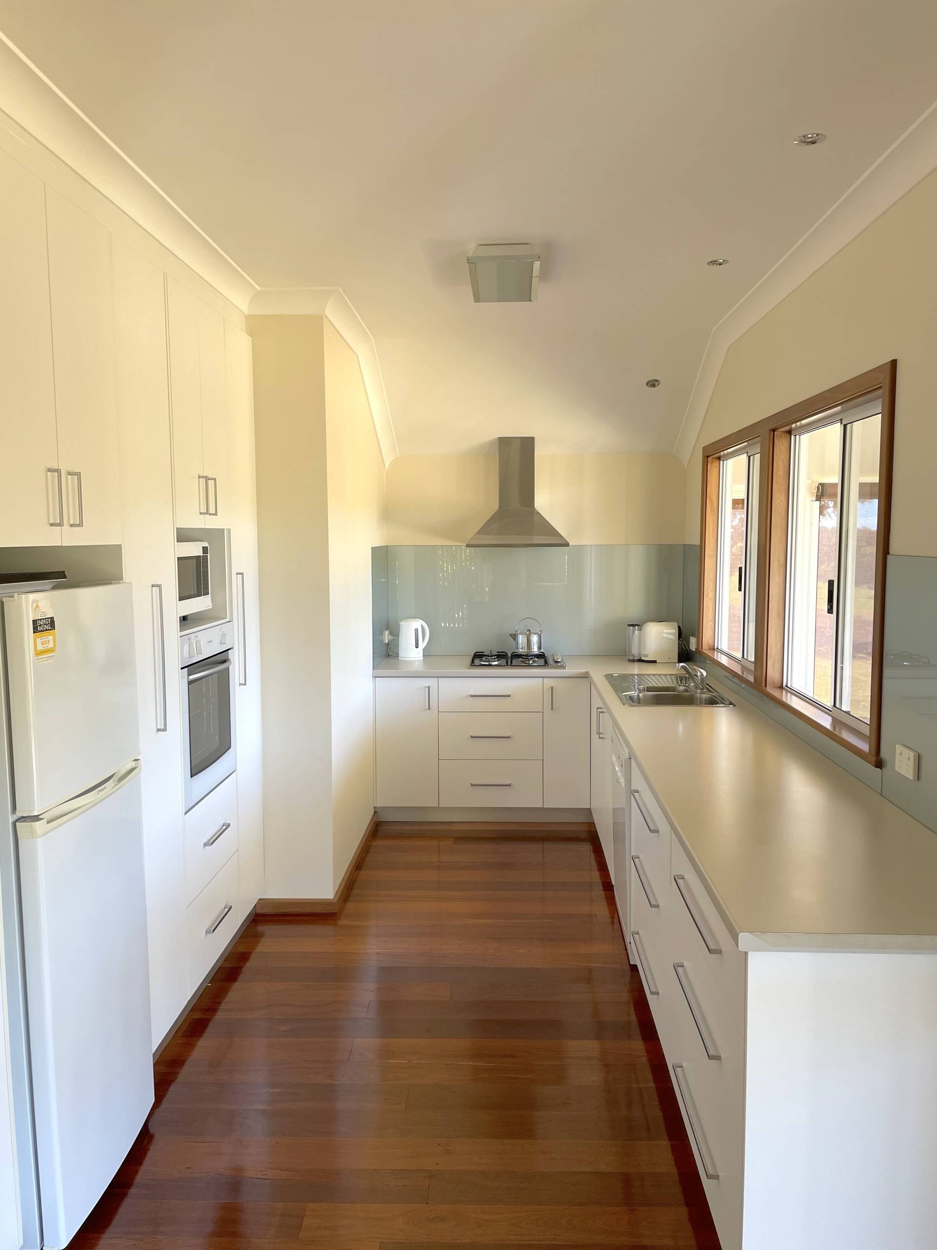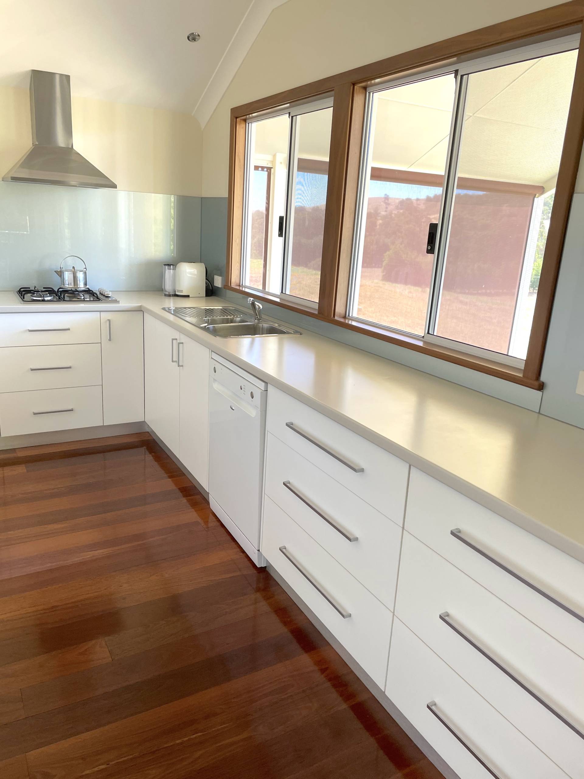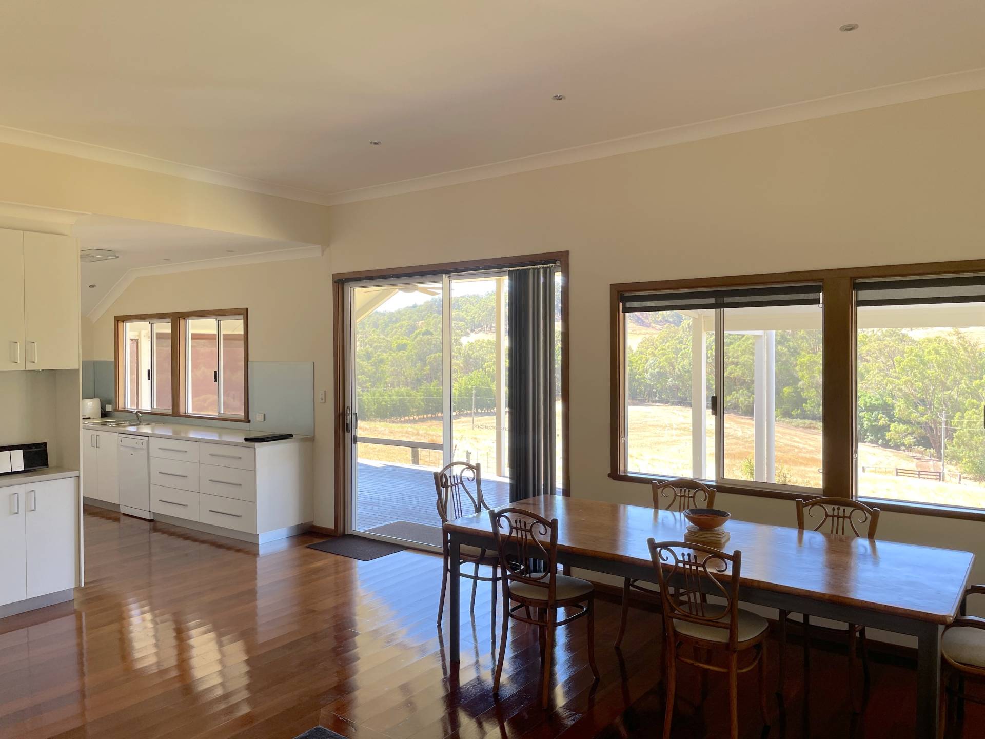 The modern kitchen overlooks stunning rolling hills and offers ample storage, dishwasher and if required kitchen items.