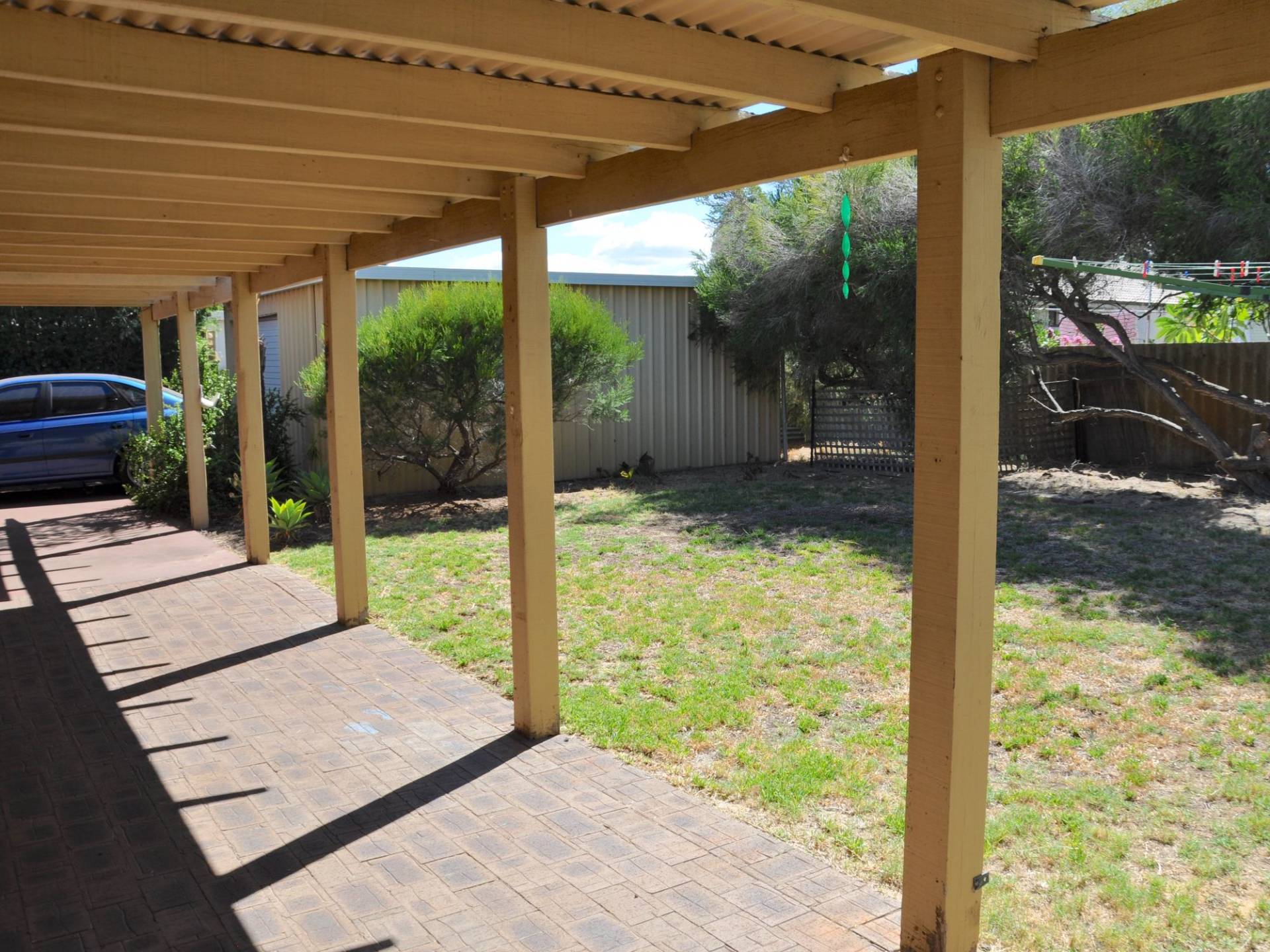 • Drive through carport with large shed at rear;