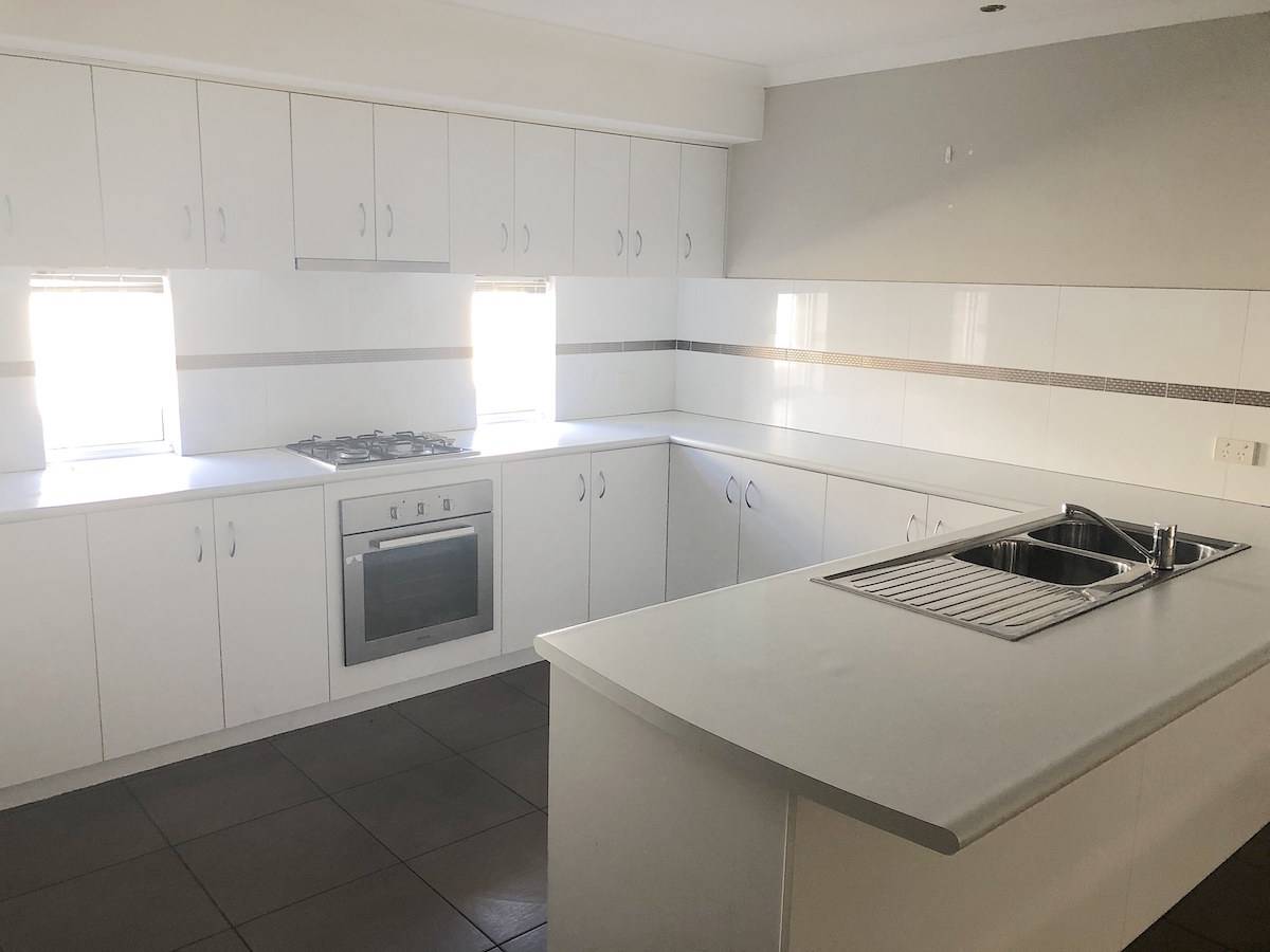Large Kitchen with walk in pantry, plenty of cupboards and a dishwasher;