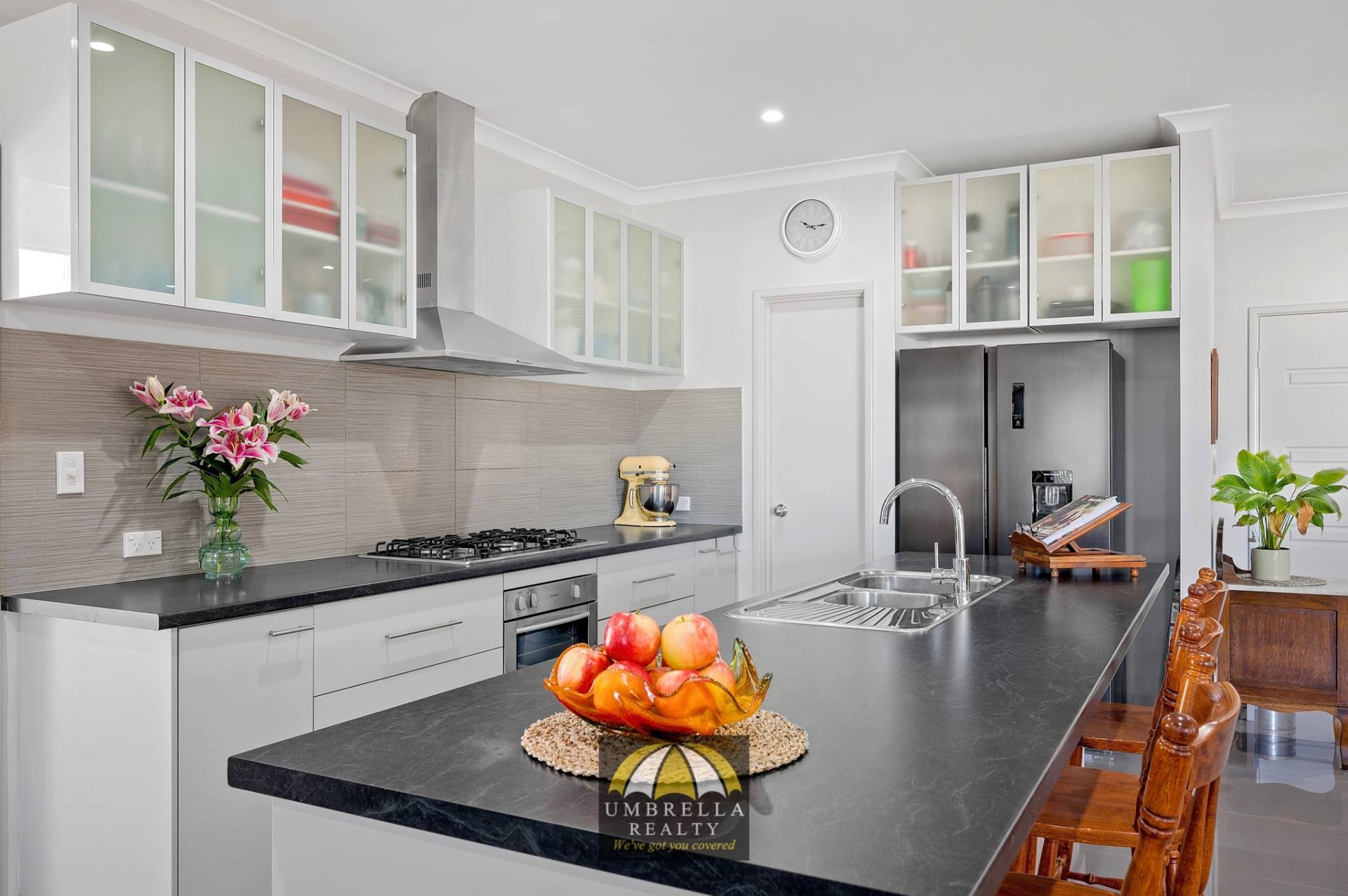 -A well-designed kitchen with a large pantry, gas cook top and dishwasher