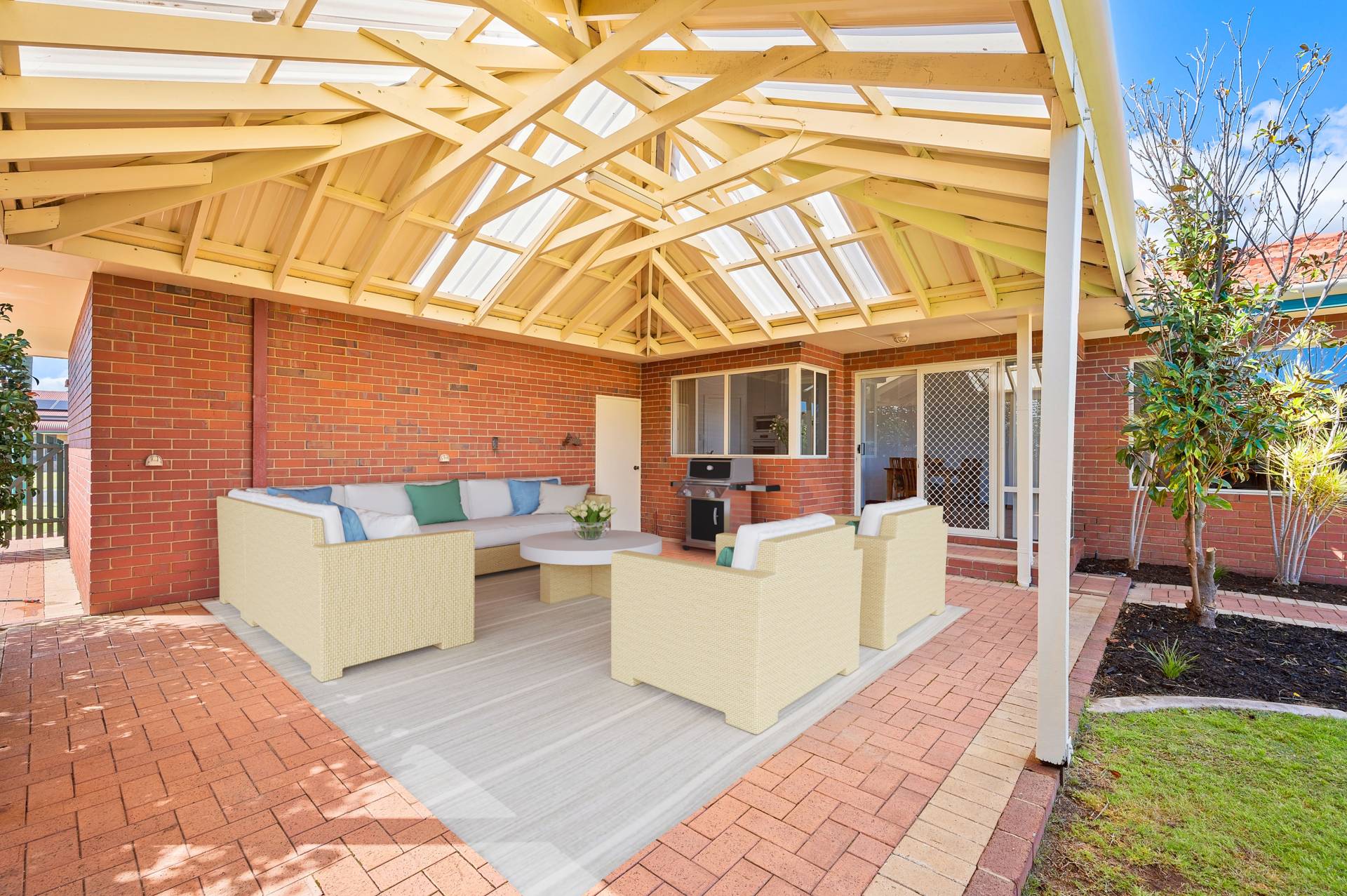 The open plan kitchen/dining/living area opens out onto a massive gabled patio. Perfect for all year round entertaining. The master offers a semi en-suite and built-ins, the 2nd and 3rd bedrooms are queen-sized.