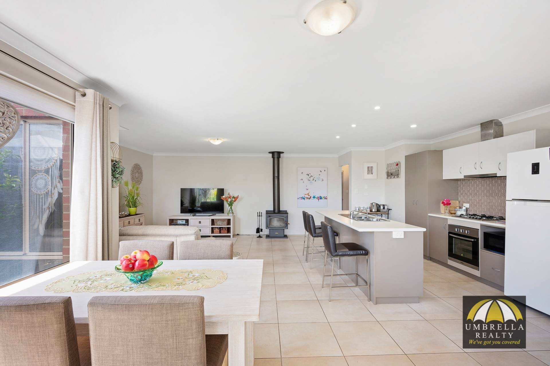 This spacious street front home is immaculately presented and offers a double remote garage, all three bedrooms are queen-sized with the master offering an ensuite and walk-in. The open plan kitchen/dining/living allows the northern light to beam in and opens out to a very private courtyard that also captures the stunning northern light. Heating and cooling are taken care of- reverse cycle air-conditioning, a tile fire and a gas bayonet.