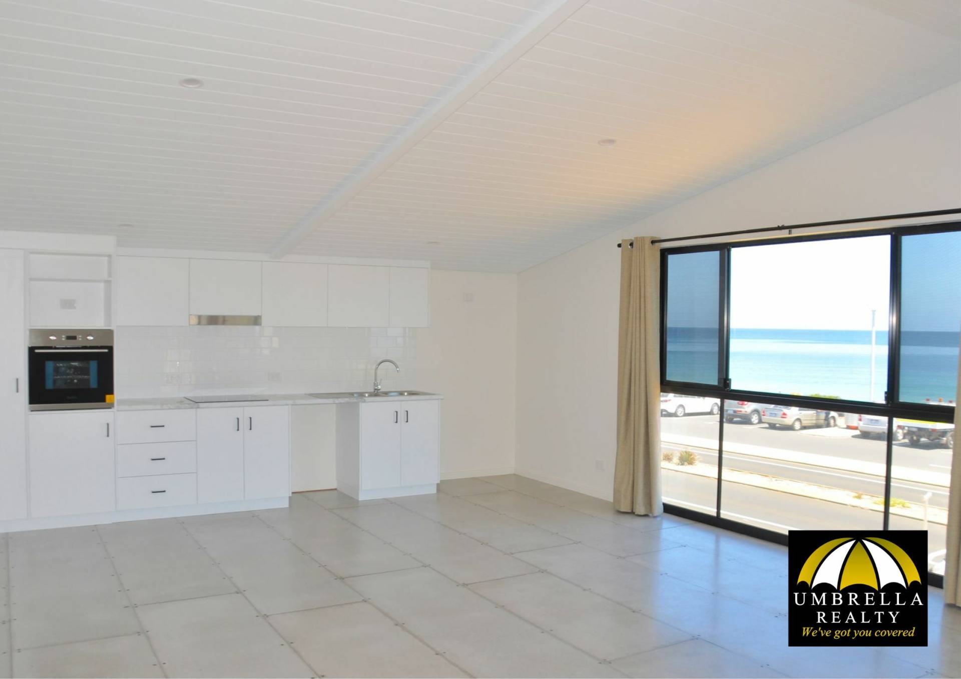 The lounge/ kitchen / dining area offers stunning ocean views and raked ceilings. The Kitchen is modern and brand new with stainless steel appliances including wall oven, induction cook-top and exhaust. There is a space for a dishwasher if you desire to bring your own!