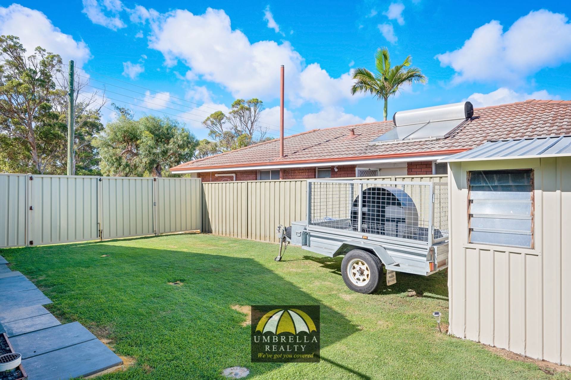 • A private secure fully enclosed backyard with a powered shed.