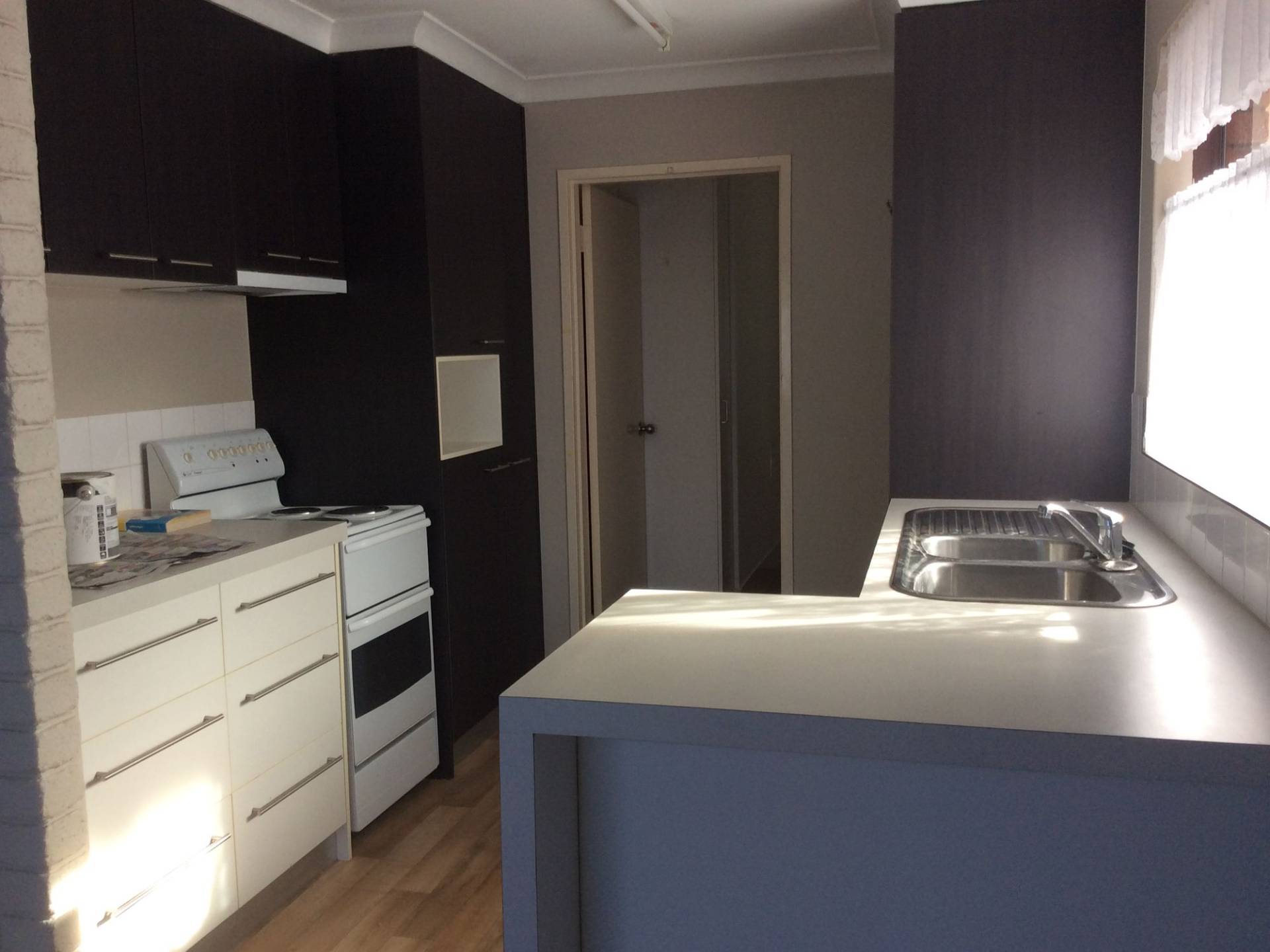 • Near new kitchen with near new stove, kitchen cupboards