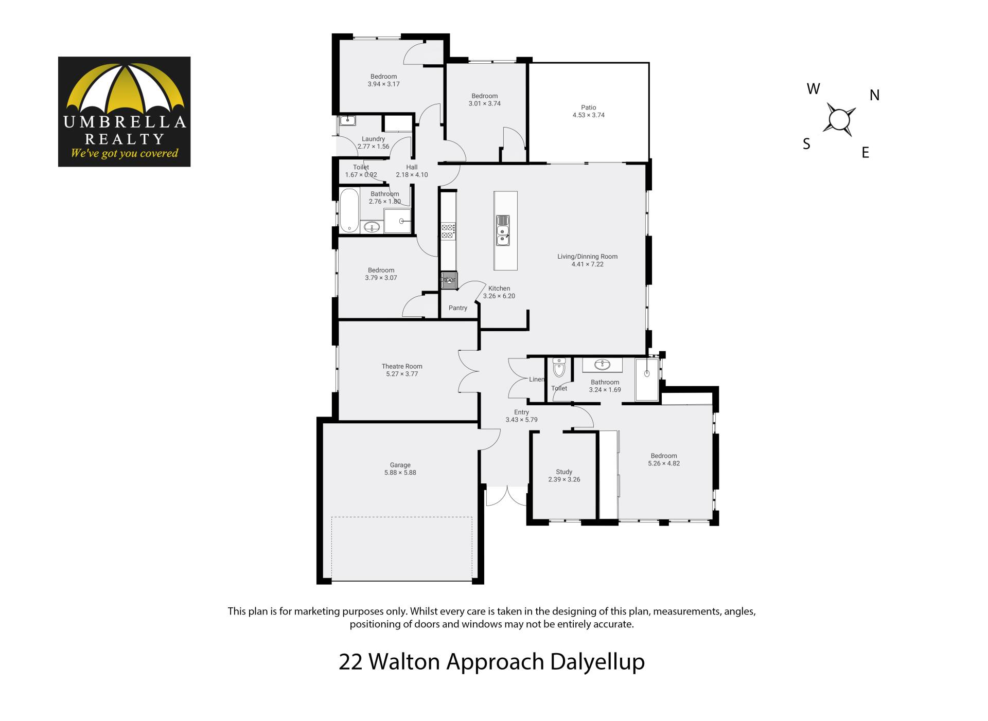 • Separate study located at the front of the property offering ample light;