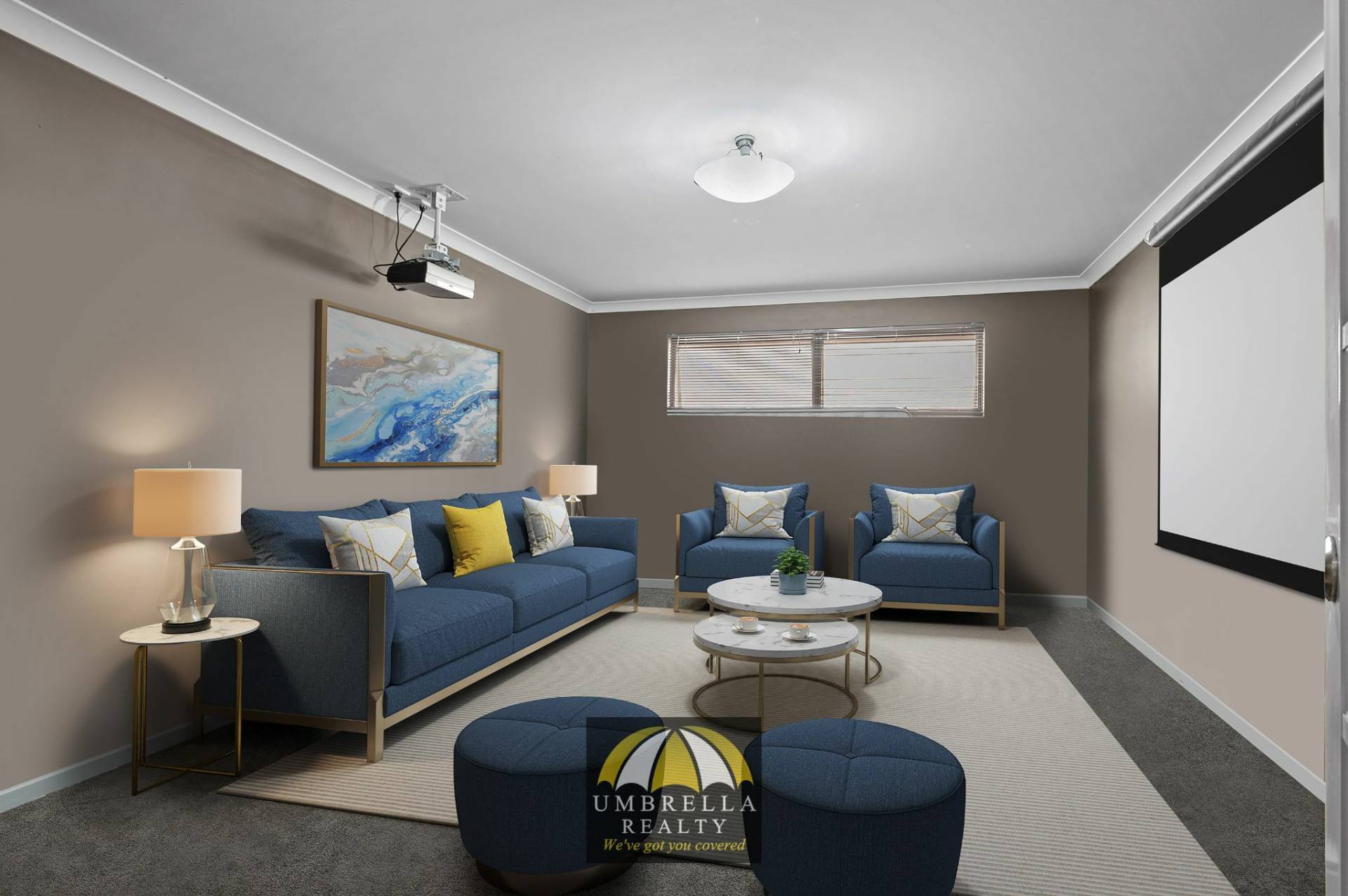• Large theatre room with projector screen;