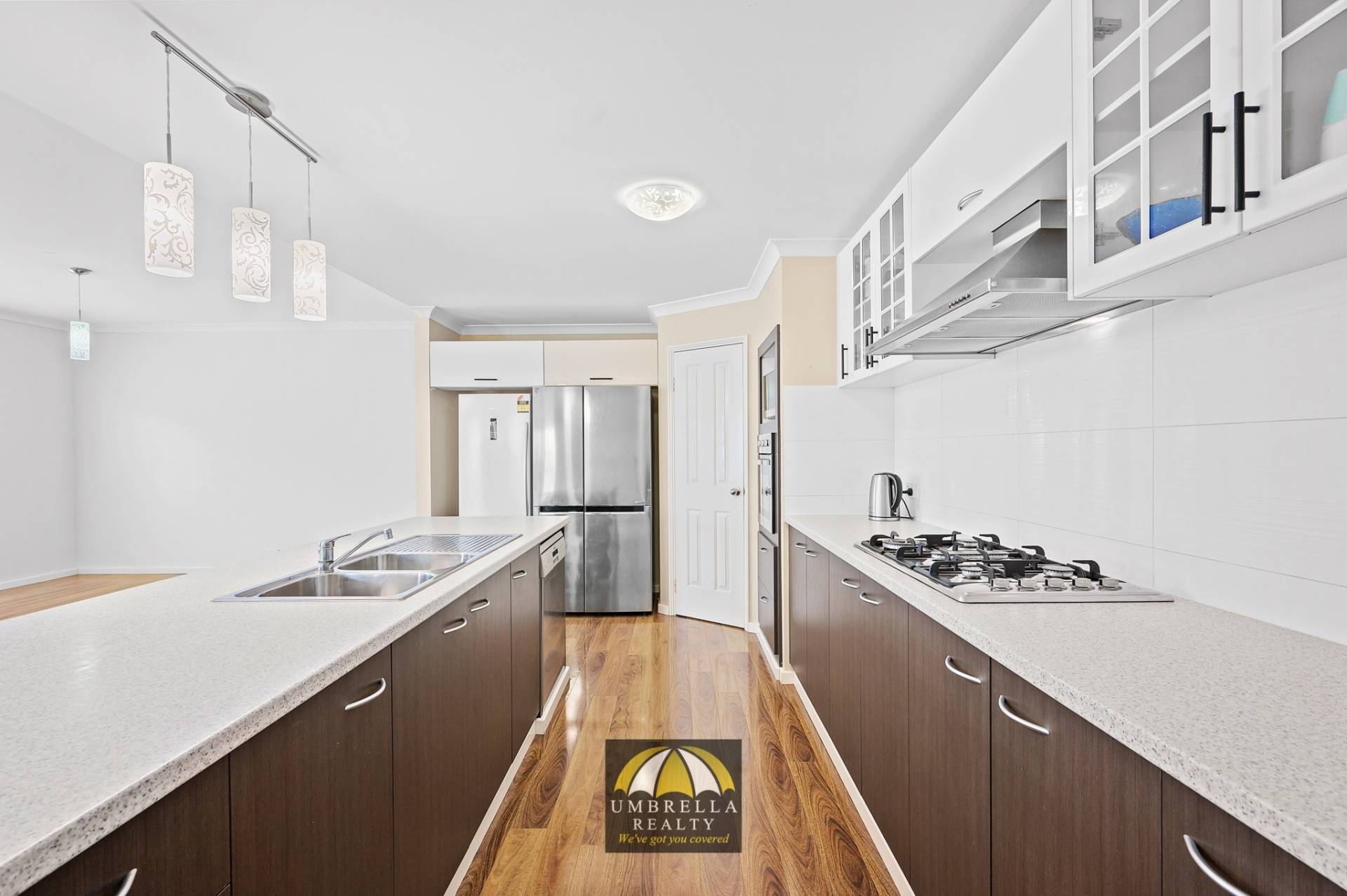 • Large kitchen offering gas cooktop, breakfast bar, double stainless steel sink and dishwasher;